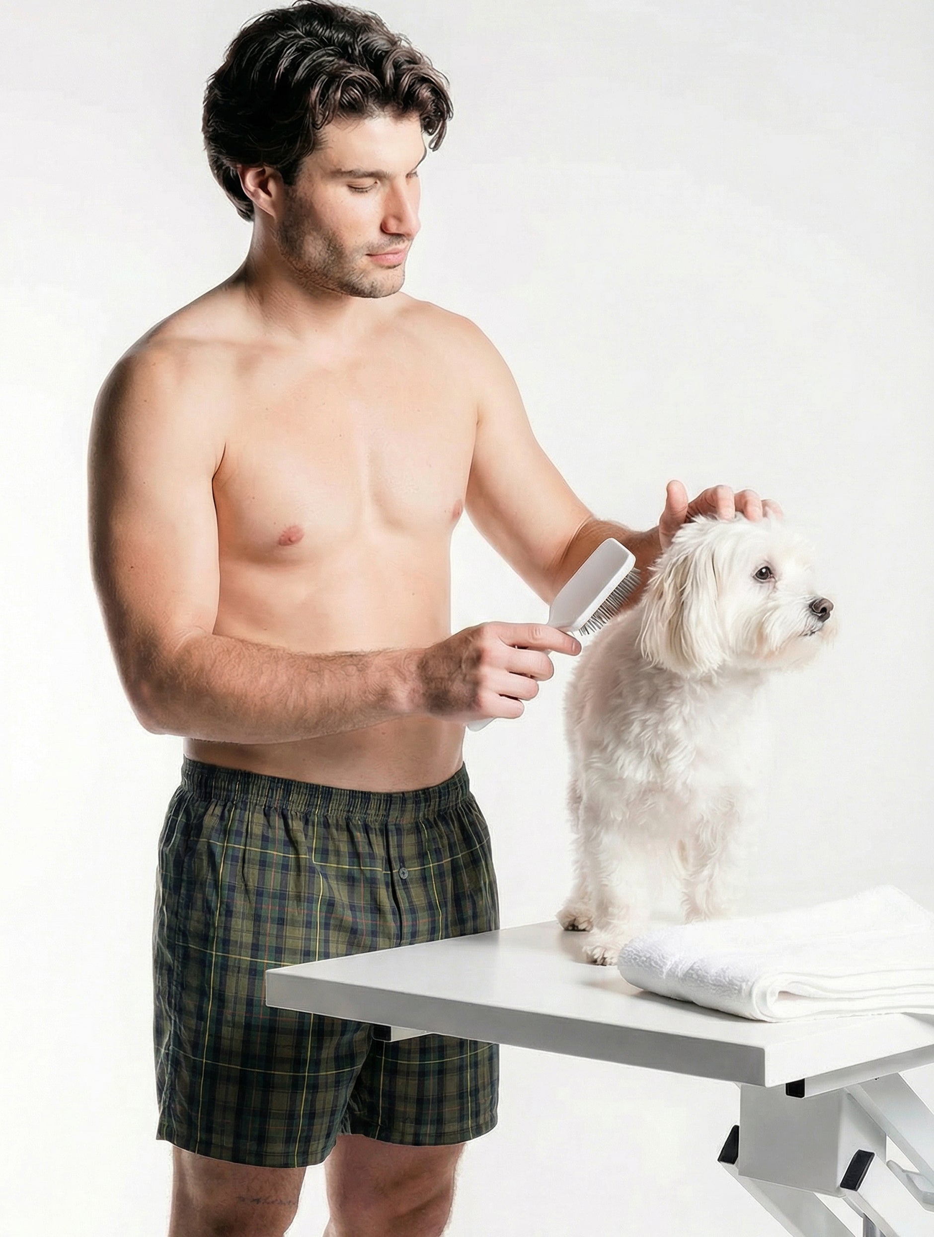 Weekend Warfare is a khaki check pattern built for low-stakes battles and high-level comfort. It looks rugged enough to suggest plans, but relaxed enough to cancel them without guilt. Earthy, balanced, and quietly tactical, it keeps everything below the belt steady while your weekend goes to war with your to-do list. Down here, the mission is always comfort.